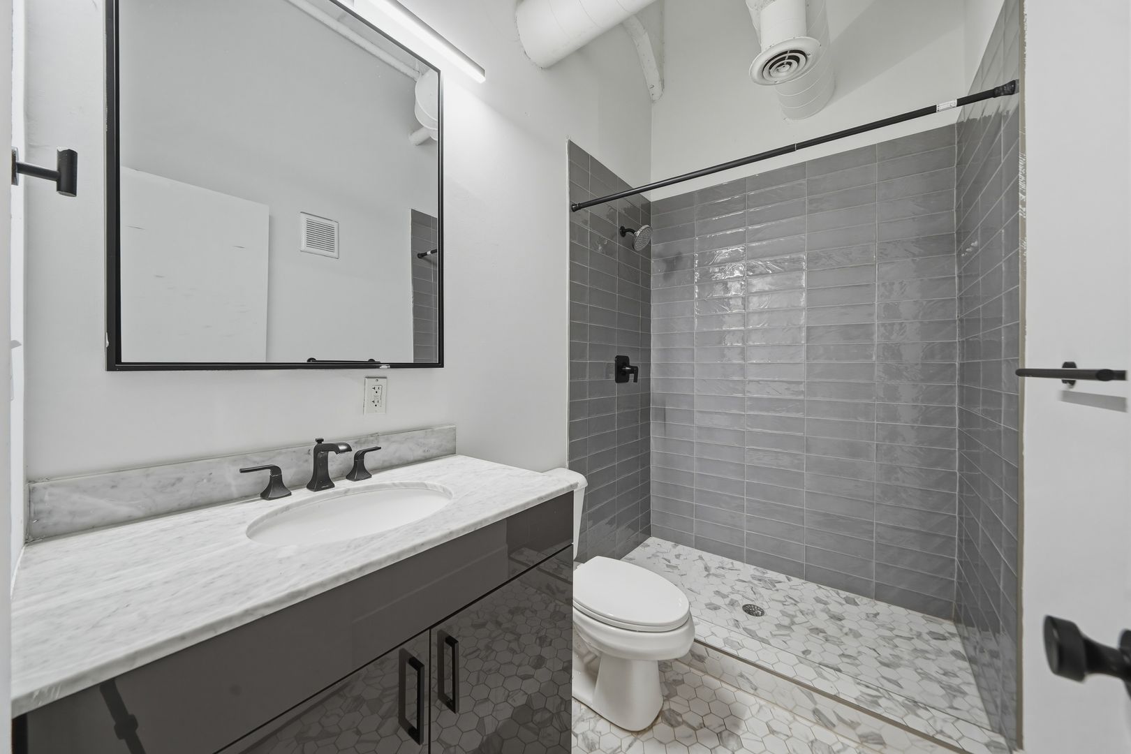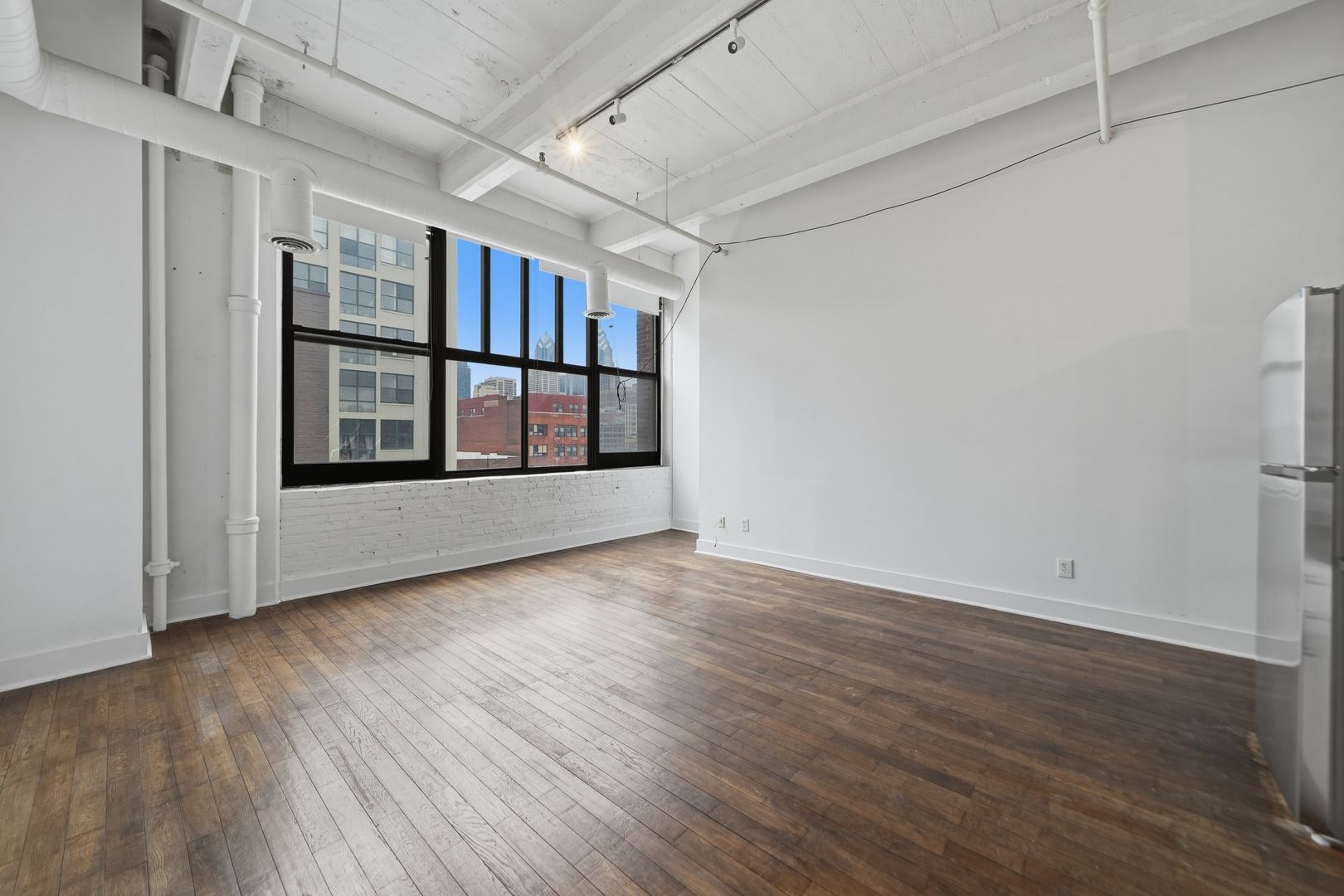 This modern 2 bedroom with extra office or small bedroom/2 full bath unit is designed for a future-way of living. The open concept living & kitchen area features white quartz countertops, stainless steel appliances, and white shaker cabinets. The polished concrete and hardwood floors preserve the industrial feel of the repurposed factory that is now The Wolf Building. Updated bathrooms with new vanities and tiling. Large loft windows with views of Center City. Washer and dryer in unit. 1 MONTH FREE ON 13 MONTH LEASE!
