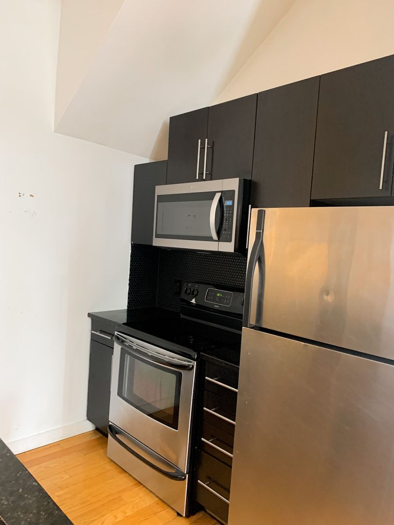 This stylish bi-level 2-bedroom, 2.5-bathroom apartment in Graduate Hospital offers a spacious living area, a modern kitchen, and updated bathrooms. Ample closet space in both bedrooms and the hallway ensures plenty of storage. The unit features exposed brick and hardwood floors, adding warmth and character. Positioned away from the street, it provides a quiet living environment. Enjoy stunning city views from private roof deck. Free shared laundry is available in the building.